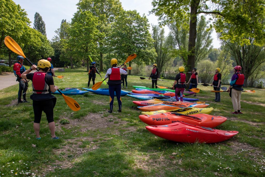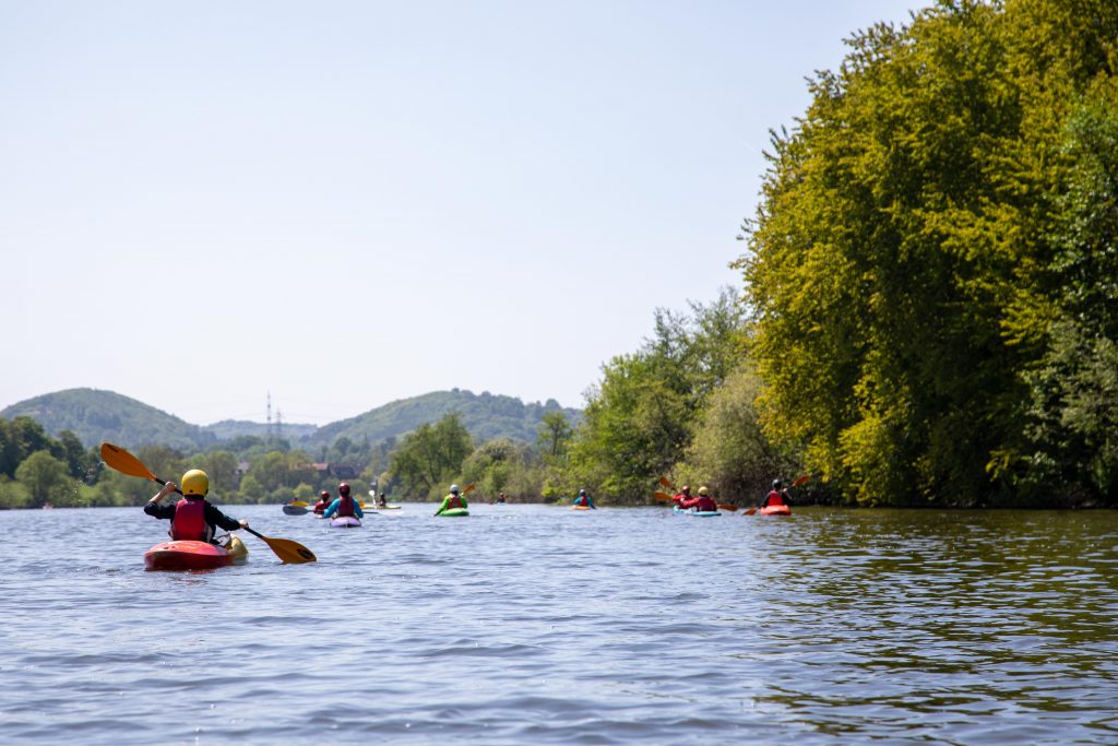 Am zweiten Tag gehen wir auf die nahegelegenen Flüsse (Ruhr, Sülz, Agger, Sieg, Wupper, Rur o.Ä.). Dort werden die erworbenen Fähigkeiten vertieft, das Fahren von Kehrwässern gelernt und Infos über Naturschutz auf und am Wasser vermittelt.
