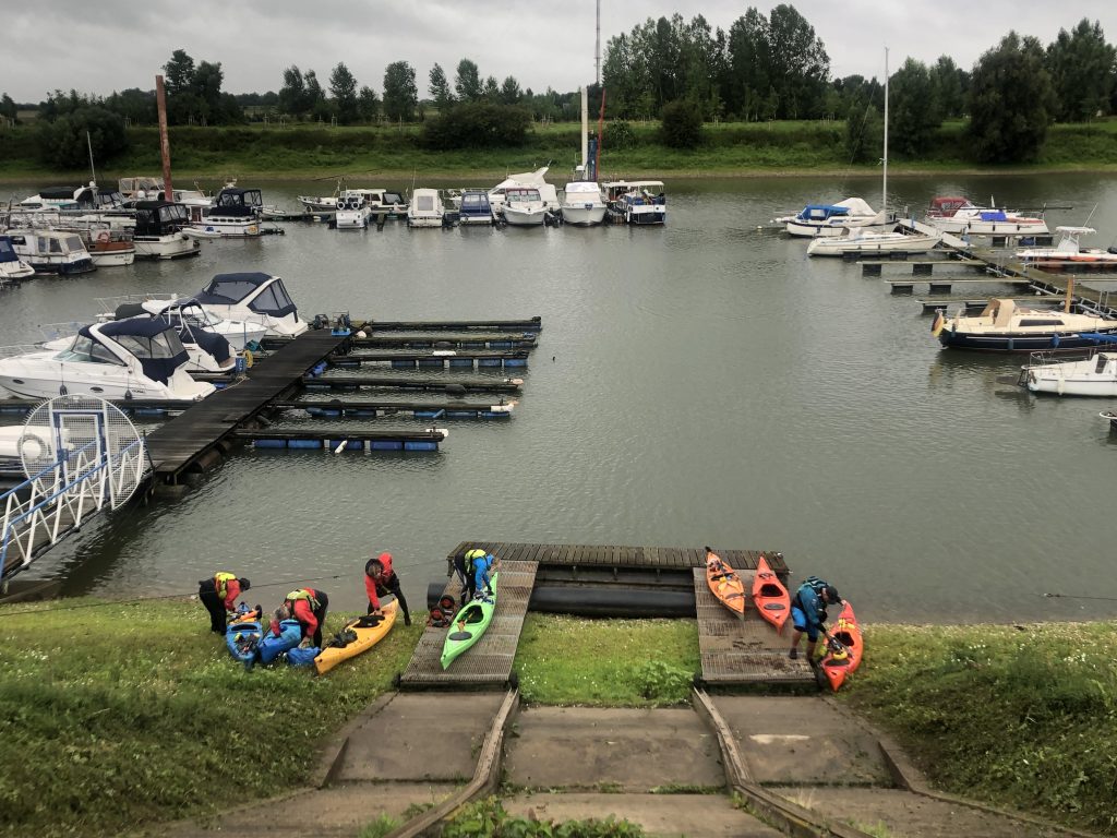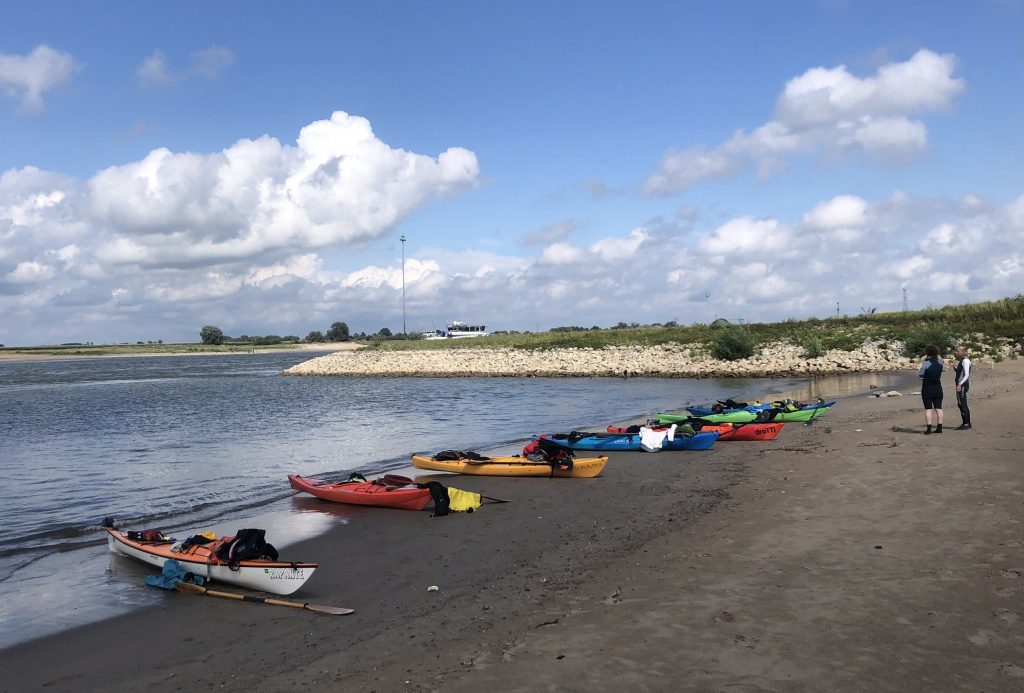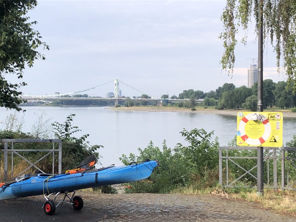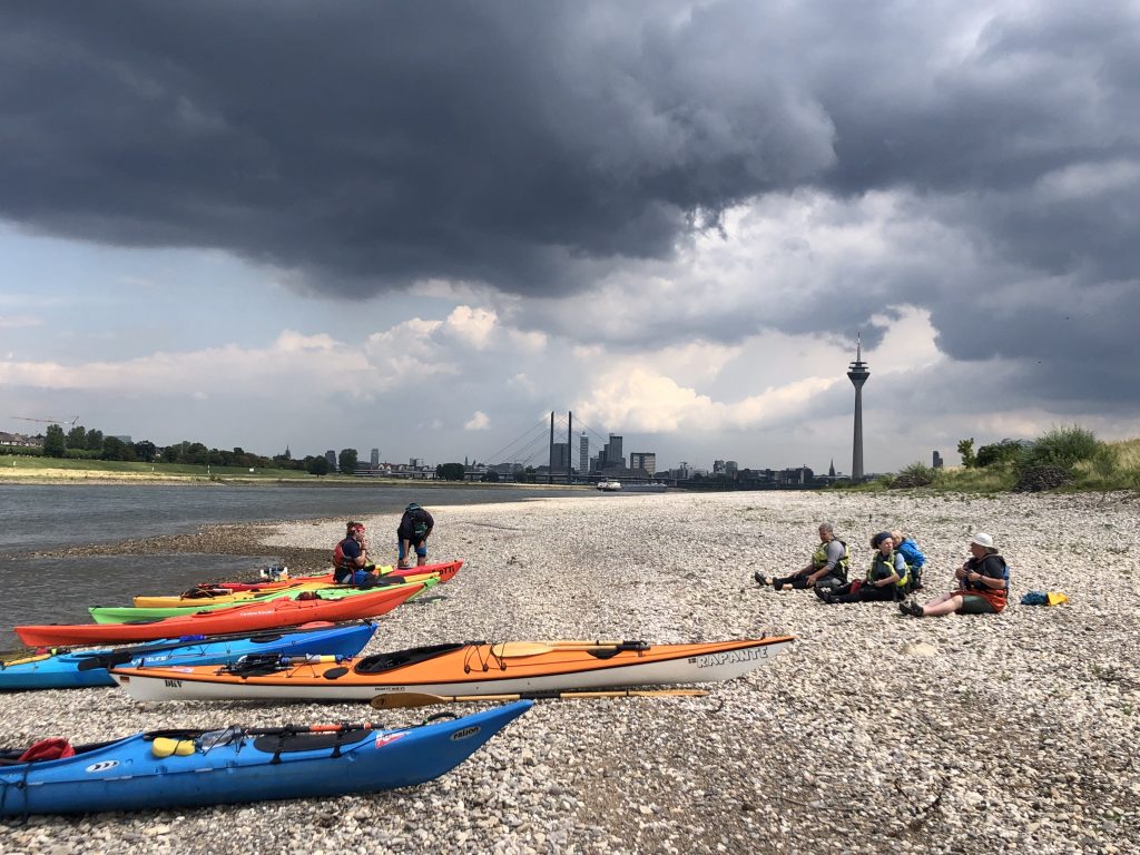 Es gibt viele Möglichkeiten, zu verreisen und den Urlaub mit Aktivitäten aller Art zu verbringen. Ein besonderer Zauber liegt aber darin, die Haustür hinter sich zu schließen und einfach aufzubrechen, egal ob zu Fuß, mit dem Fahrrad oder im Boot. So sind heute Regina, Felix, Tommi, Monika, Elke,, Maria und Christoph im Kajak vom Neptun-Bootshaus mit dem Ziel Nordsee gestartet. Nach Umkurven einiger Gewitter, mit Wind aus allen Richtungen und Fahrt durch Düsseldorf war nach 62 Rhein-km das Tagesziel in Meerbusch erreicht.