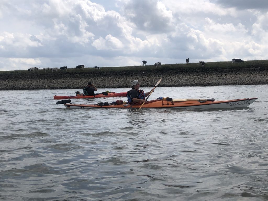 … wie von alten holländischen Meistern gemalt, begleiteten uns heute auf der 47 km-Etappe nach Zennewijnen, leider komplett gegen den Wind inklusive einer Gewitter-Abwetterung hinter Nijmegen.Am Ufer Schafe, Kühe, Wildpferde und Dromedare (!) Zum krönenden Abschluss ein abenteuerlicher Ausstieg zu einem Campingplatz,, den vermutlich zum ersten Mal Paddler vom Waal erreicht haben (mehr dazu morgen). Wir freuen uns jedenfalls sehr, dass Pius nun zu unserer Truppe hinzugestoßen ist.