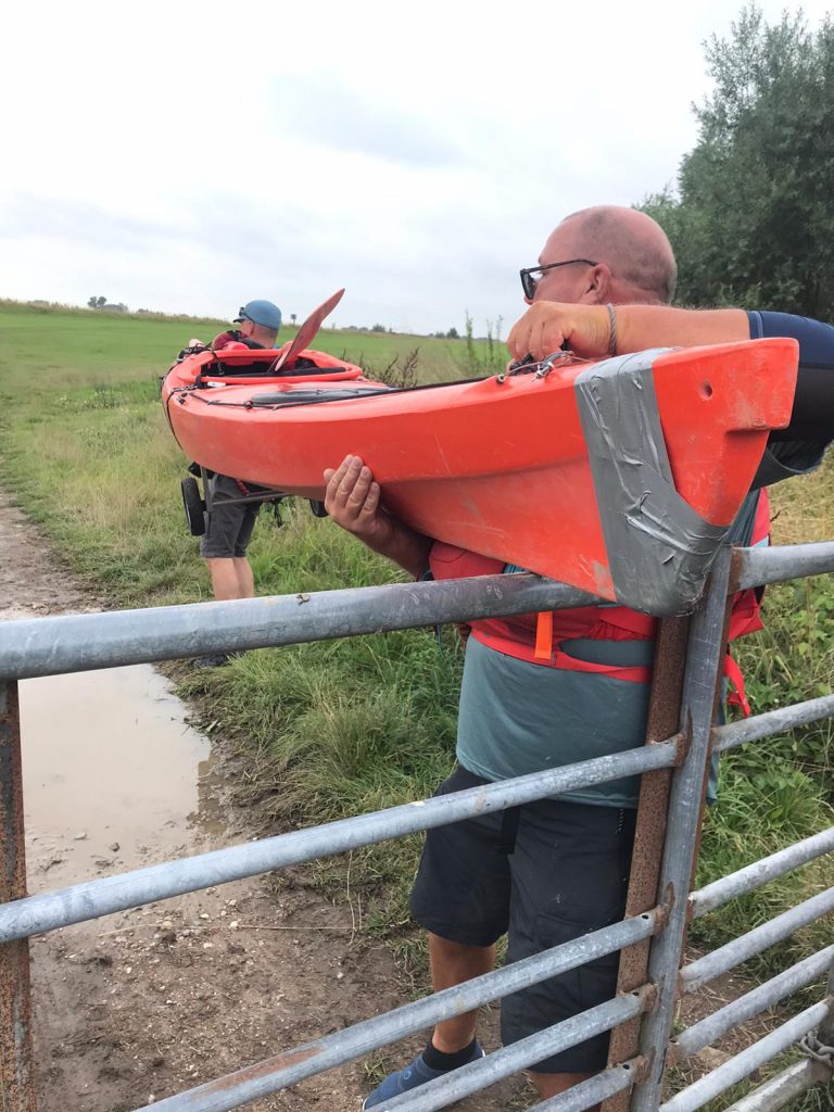 Manchmal sieht man das Ziel schon vor Augen, doch es ist einfach nicht erreichbar. Das Weidezauntor am Deich zwischen Campingplatz und dem Fluss war mit vereinten Kräften noch zu überwinden .