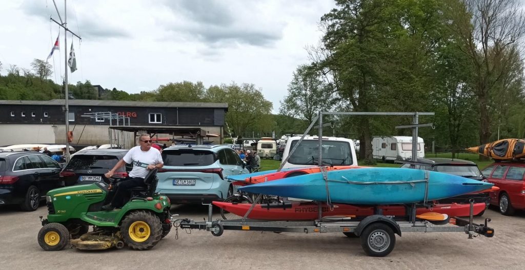 Am Wochenende 27./28.04.24 machten wir uns zu sechst auf den Weg in den Ruhrpott zur Teilnahme an der 51. internationalen Kanu-Rallye NRW. Unterkunft: auf dem weitläufigen Gelände des LDKC Bochum-Dahlhausen, zum ersten Mal in diesem Jahr wieder zelten! Abends wurde gegrillt und zum Pils gab es Unter-Tage-Geschichten von den Ex-Kumpels – Glückauf! Am nächsten Morgen war klar, was sich durch den Regen der Tage zuvor schon angekündigt hatte: Fahrverbot wegen Hochwasser auf der Ruhr ab Stadtgebiet Essen. Also gab es für alle „nur“ die Bronzestrecke, 26 km von Witten bis zum LDKC. Trotzdem eine herrliche, abwechslungsreiche Tour durch die fantastisch renaturierten Ruhrauen mit Kemnader See, 2 Umtragungen und 3 Bootsrutschen. Bei Windstärke 3-4, streckenweise direkt von vorne, gab es nur wenig Beschwerden über die Streckenverkürzung 😉 Und in der Hattinger Bootsgasse ordentlich Wasser auf das Deck unserer Langboote.