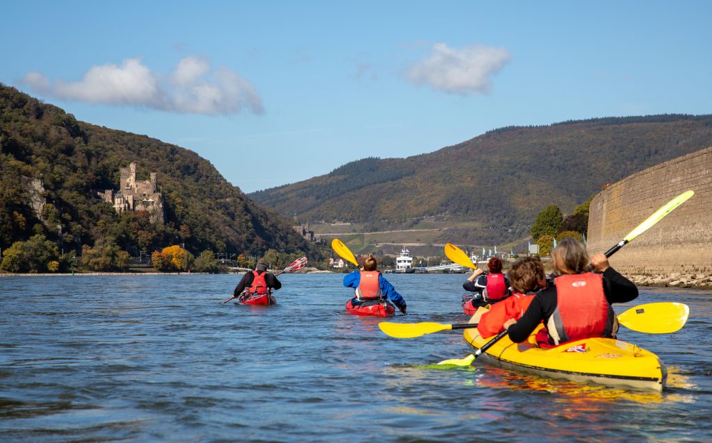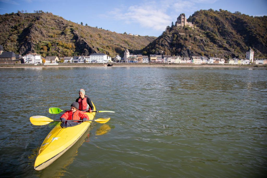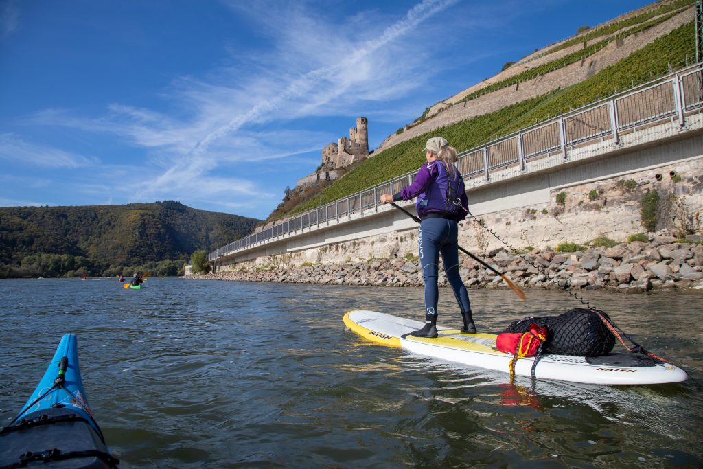 Den ganzen Tag waren wir auf dem Wasser und sind an Bingen, Trechtingshausen und Kaub vorbei gepaddelt.