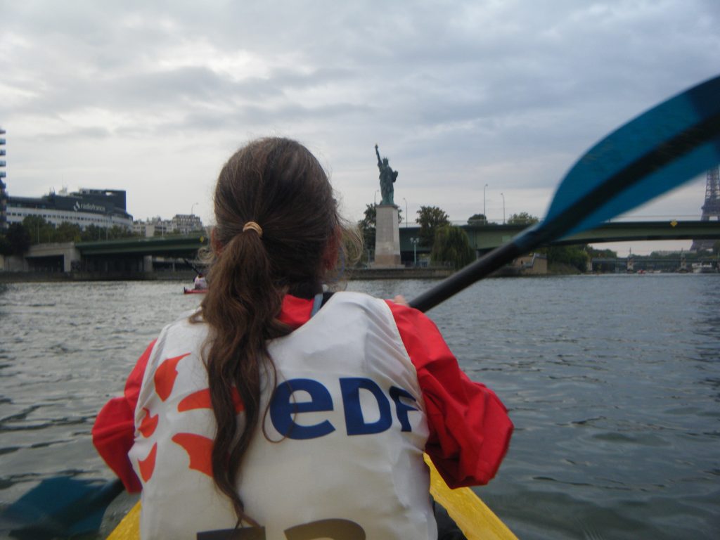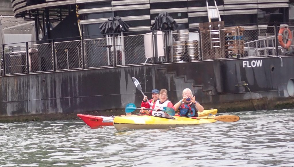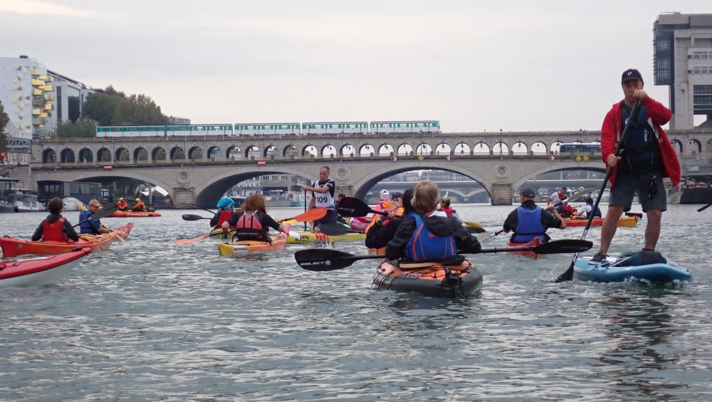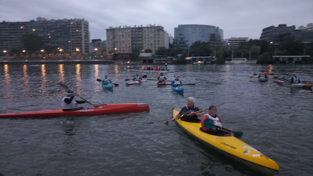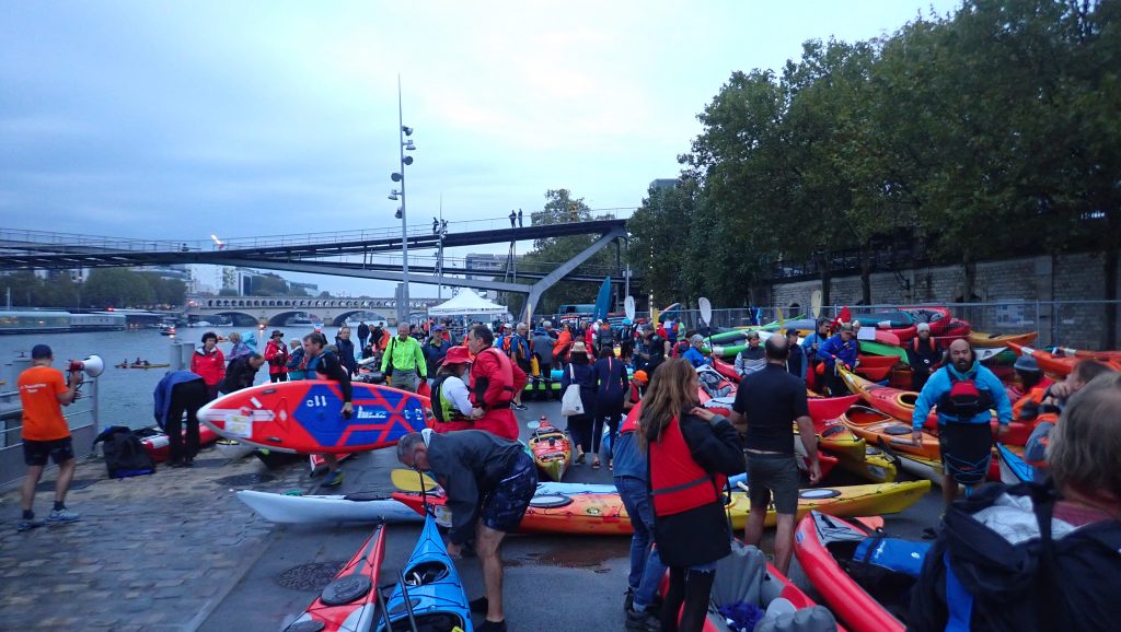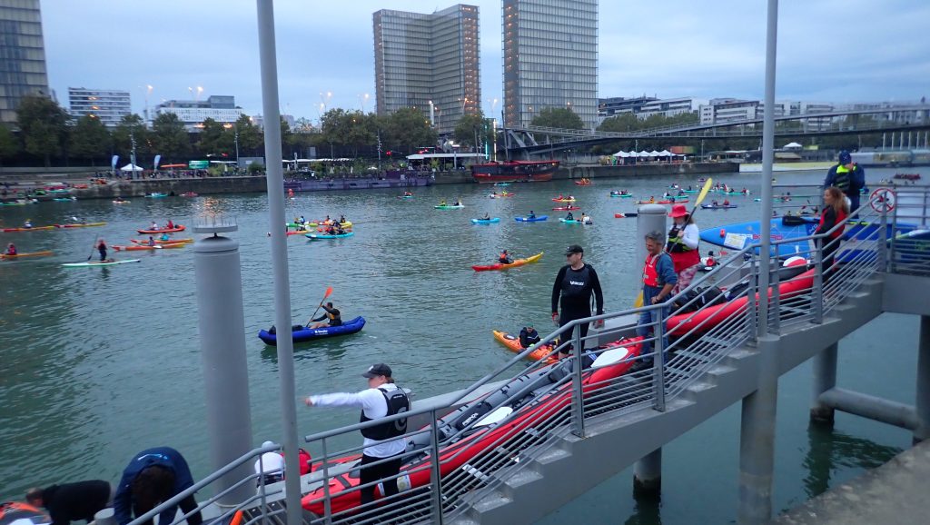 Die prickelnde, energiegeladene, leicht aufgeregte Atmosphäre vor einem Großereignis ist spürbar… noch im Dunkeln erwachen die Wassersportfreunde in Paris, alles ist perfekt organisiert und läuft reibungslos. Knapp 1.000 Hobby- und Freizeitkanuten werden am Port Bercy „zu Wasser gelassen“. Selten haben 1 Croissant und ein Cafe so gut geschmeckt, wie auf dem Wasser kurz vor dem Massenstart…10,9,8,7……und los! Eine Mischung aus sportlichem Ehrgeiz und Sightseeing beginnt. Wir ziehen an einem Highlight nach dem anderen vorbei: Notre Dame, Louvre, Eiffelturm – was für beeindruckende, berauschende Momente. Wieviel Brücken Paris hat, mehr als 7, nach 11 habe ich aufgehört zu zählen…ach ja, es ist ja ein Sportevent mit Zeitmessung! Die ersten Profis (doppelte Strecke) „fliegen“ an uns vorbei – ok, auch wir erhöhen Schlagzahl und Druck, der Pelikan rauscht an Booten vorbei…Ziel! Und dabei liegt fast der ganze Tag noch vor uns….