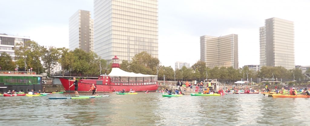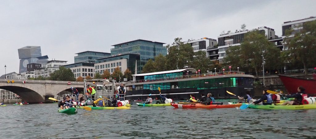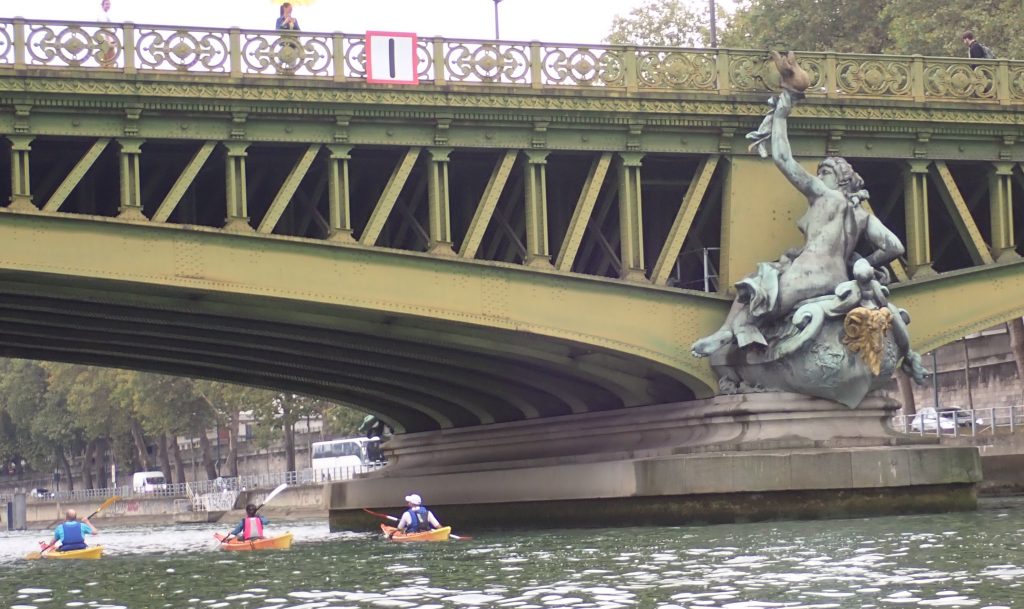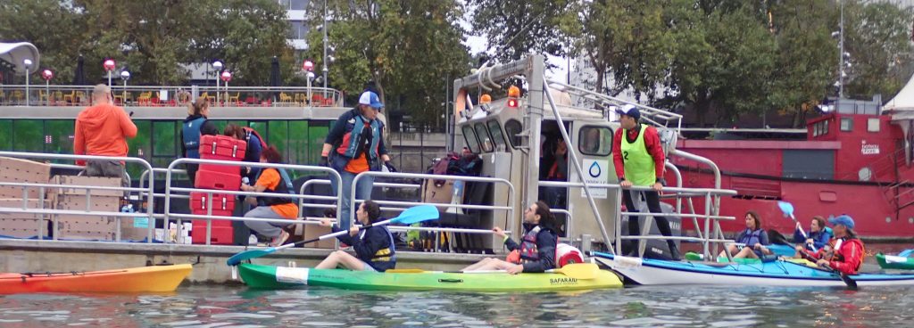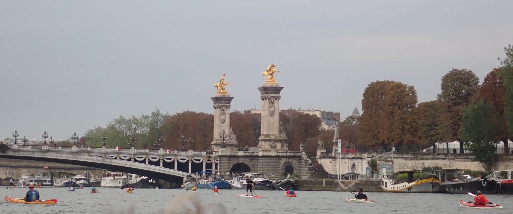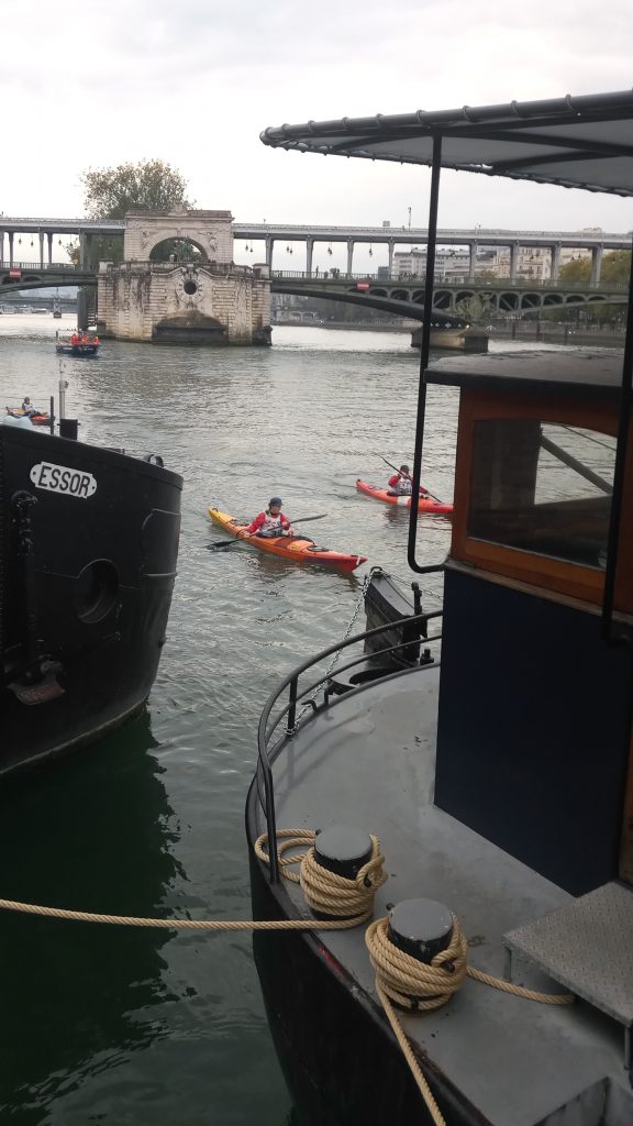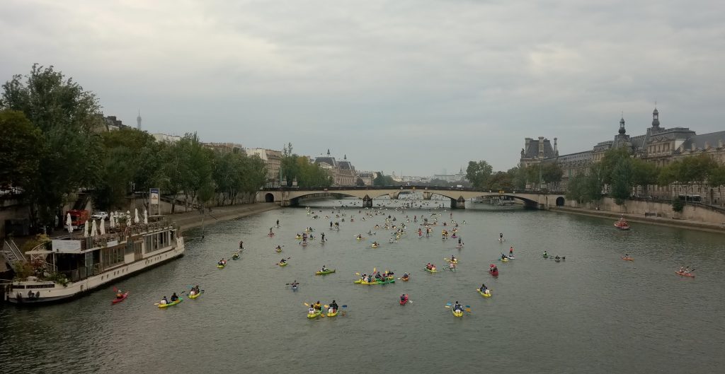 Die prickelnde, energiegeladene, leicht aufgeregte Atmosphäre vor einem Großereignis ist spürbar… noch im Dunkeln erwachen die Wassersportfreunde in Paris, alles ist perfekt organisiert und läuft reibungslos. Knapp 1.000 Hobby- und Freizeitkanuten werden am Port Bercy „zu Wasser gelassen“. Selten haben 1 Croissant und ein Cafe so gut geschmeckt, wie auf dem Wasser kurz vor dem Massenstart…10,9,8,7……und los! Eine Mischung aus sportlichem Ehrgeiz und Sightseeing beginnt. Wir ziehen an einem Highlight nach dem anderen vorbei: Notre Dame, Louvre, Eiffelturm – was für beeindruckende, berauschende Momente. Wieviel Brücken Paris hat, mehr als 7, nach 11 habe ich aufgehört zu zählen…ach ja, es ist ja ein Sportevent mit Zeitmessung! Die ersten Profis (doppelte Strecke) „fliegen“ an uns vorbei – ok, auch wir erhöhen Schlagzahl und Druck, der Pelikan rauscht an Booten vorbei…Ziel! Und dabei liegt fast der ganze Tag noch vor uns….